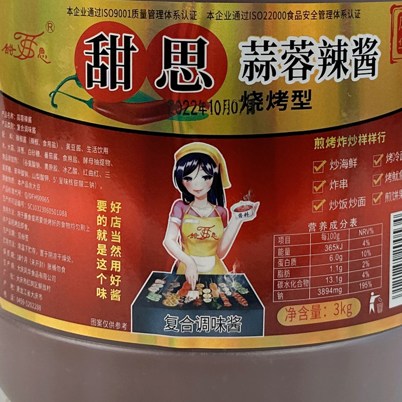 甜思烤冷面酱商用甜辣酱香辣蒜蓉酱批发大酱烧烤蘸酱烤肉串3000g