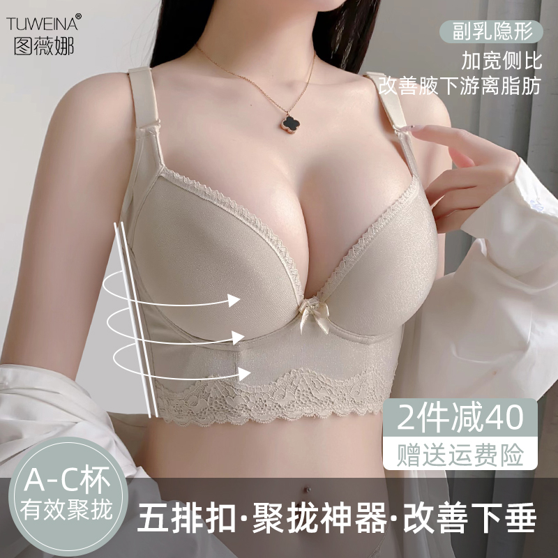 无痕内衣女士小胸聚拢收副乳防下垂大胸显小外扩调整型提拉文胸罩