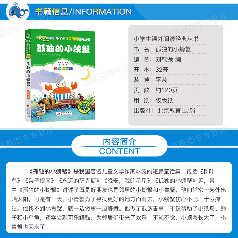正版 儿童书籍单本 系列 小学生课外书必读班主任推荐 二年级上册快乐读书吧丛书 人教版 冰波著 小螃蟹二年级注音版 孤独 4本28元