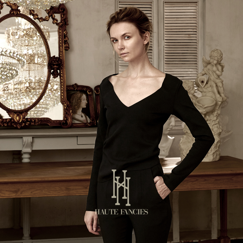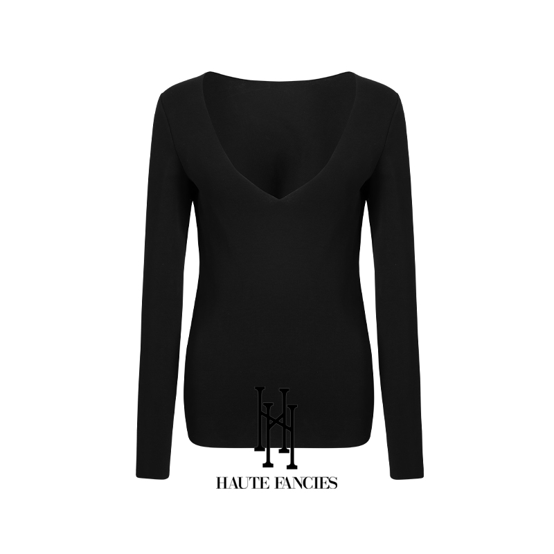T打底衫 基础款 黑色高弹舒适V领长袖 FANCIES后构想 秋冬 HAUTE
