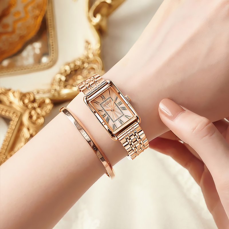 聚利时女士手表2025年新款 小方盘轻奢金属钢带小众设计高级感方形