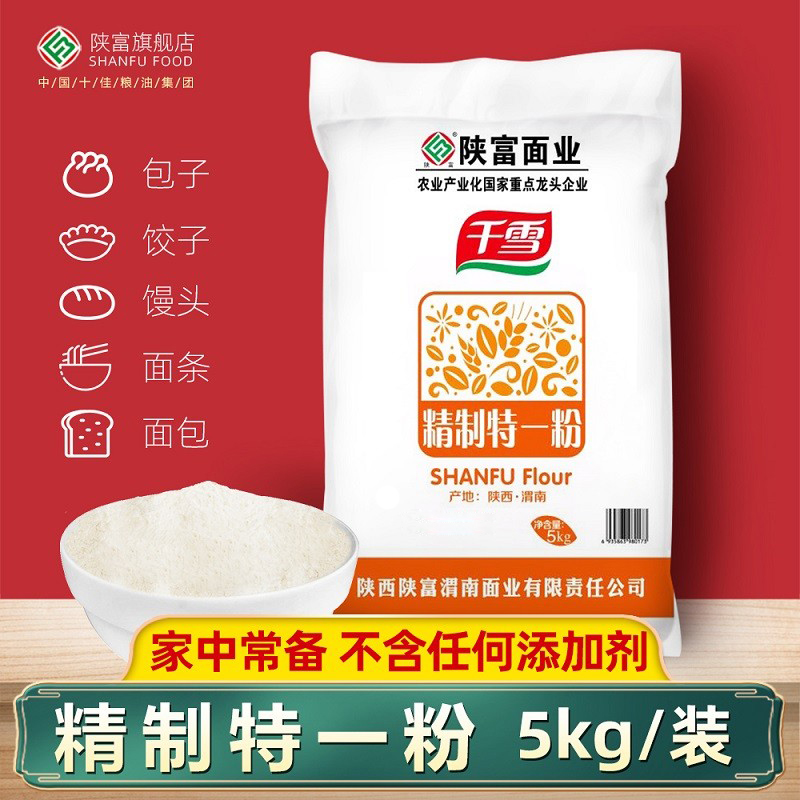 陕富 特一粉5kg陕西小麦粉家用中筋面粉饺子披萨面条包子通用面粉