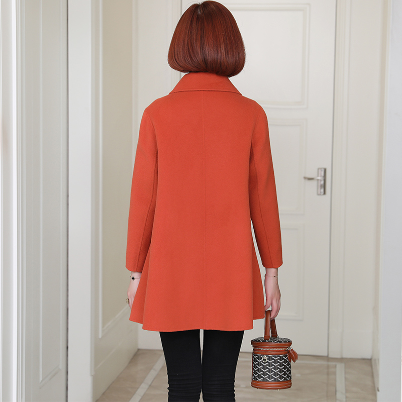 POPCHRIO欧可芮 羊毛外套女 驼绒大翻领双面毛呢呢子大衣中长短款