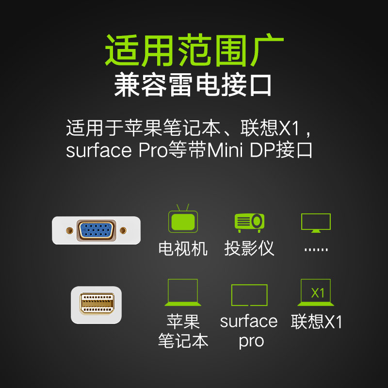 笔记本接口 book老款 绿联Mini DP转VGA转换器带音频适用于苹果Mac