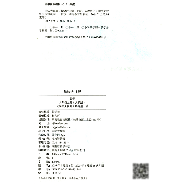 社6年级上册数学学法大视野含答案数学同步辅导书正版 2025新版 数学六6年级上册小学湖南教育出版 学法大视野人教版 现货同步练习 正版