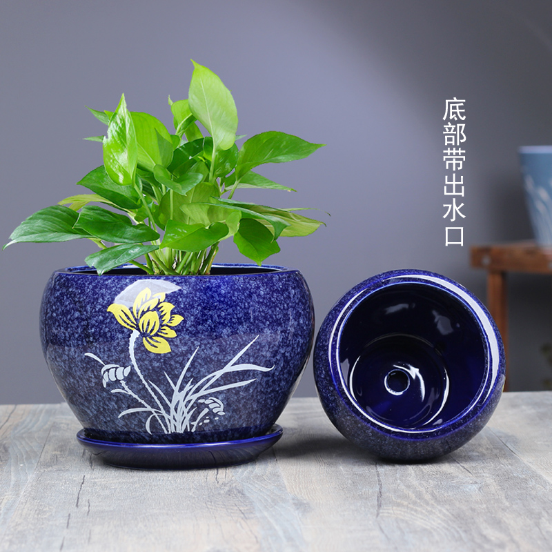 花盆陶瓷白色轻奢简约特价 清仓大号带托盘家用绿萝吊兰多肉小花盆