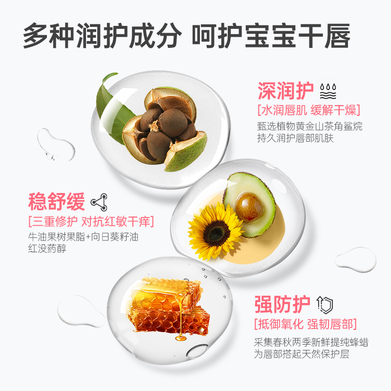 童将山茶角鲨烷婴儿润唇膏滋润保湿 宝宝护唇儿童孩学生秋冬防干裂