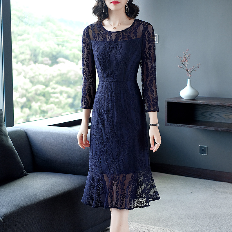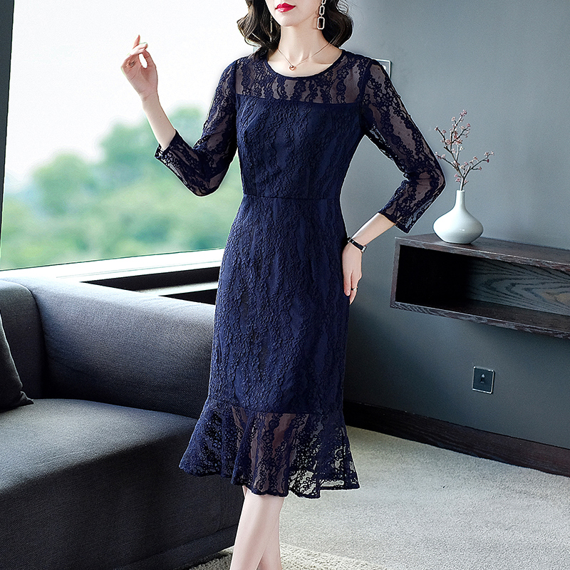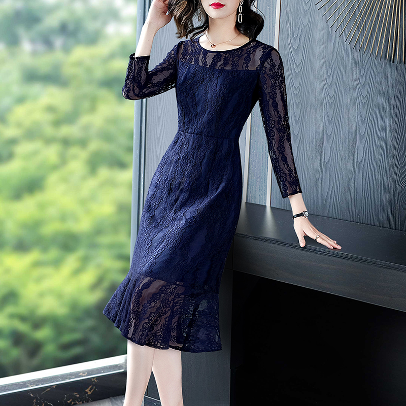 春秋连衣裙长袖 气质减龄蕾丝镂空女人味贵夫人典雅鱼尾裙 2025新款