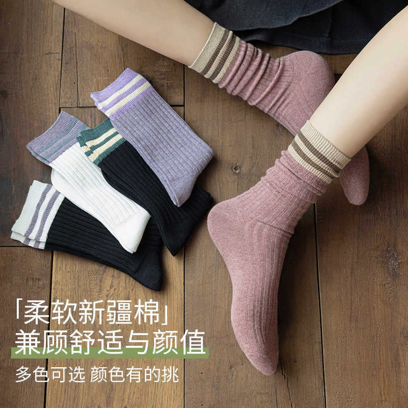 袜子女中筒袜ins潮春秋长袜黑色纯棉日系长筒袜堆堆袜女夏季 薄款