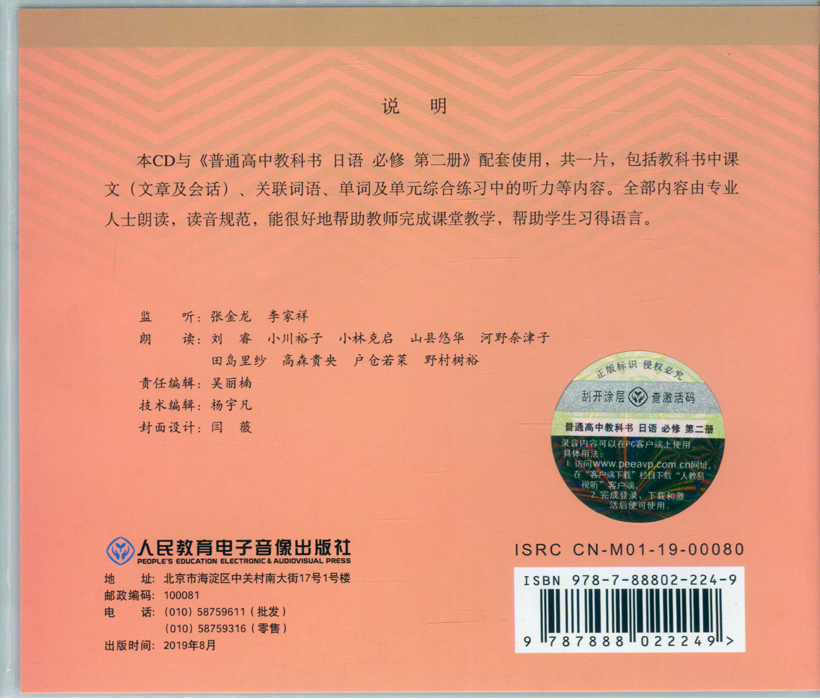 新教材高中日语CD日语必修第二册光盘音频人教版 日语必修第二册配套cd光盘日语必修2听力练习人教日语必修第2册 日语必修二CD新版