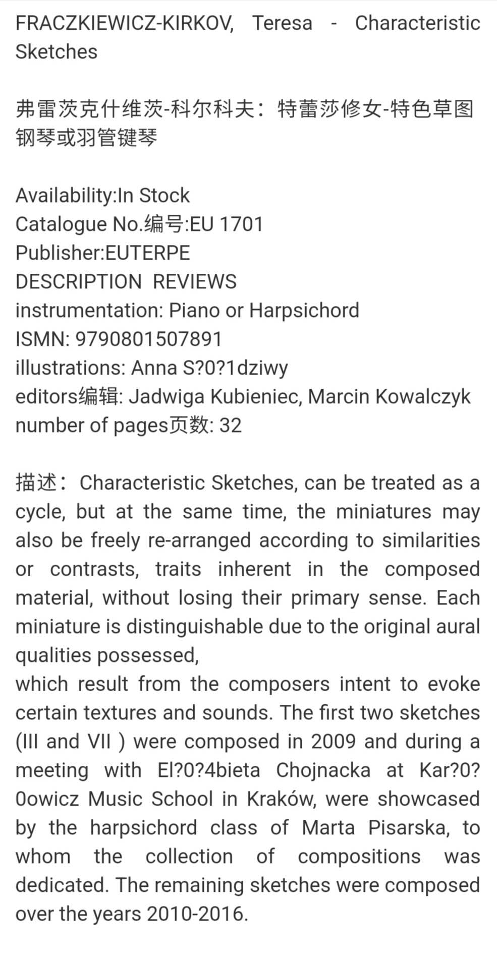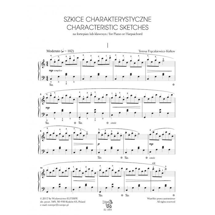 Characteristic EU1701 钢琴或羽管键琴 Teresa Fraczkiewicz 乐谱书 特色草图 Euterpe原版 Sketches 科尔科夫 Kirkov 特蕾莎修女