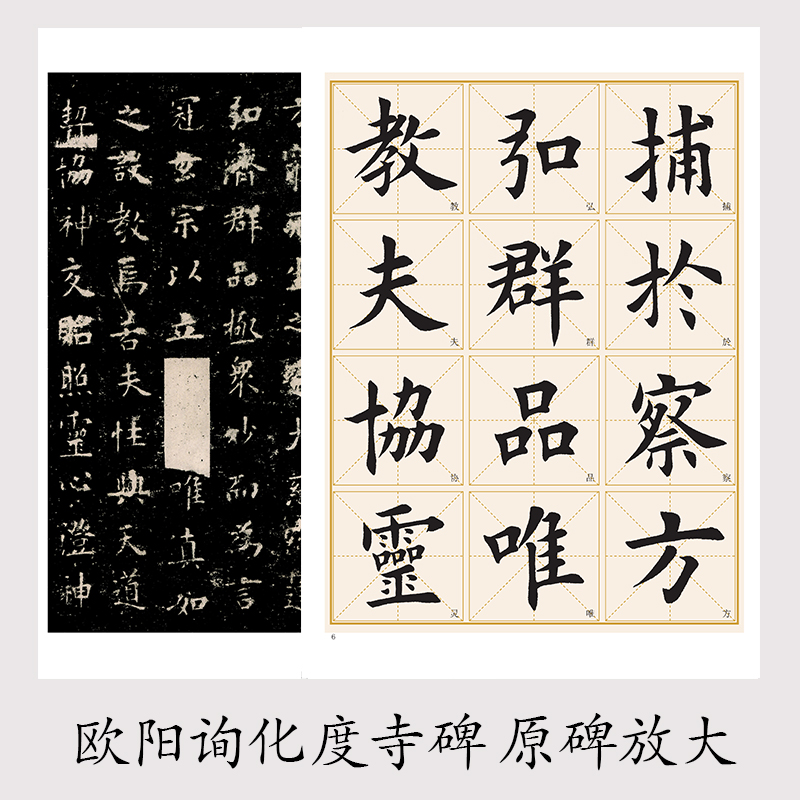 墨点字帖历代经典 碑帖高清放大对照本欧阳询化度寺碑中国古代毛笔书法碑帖彩色放大本临摹原碑拓本字帖