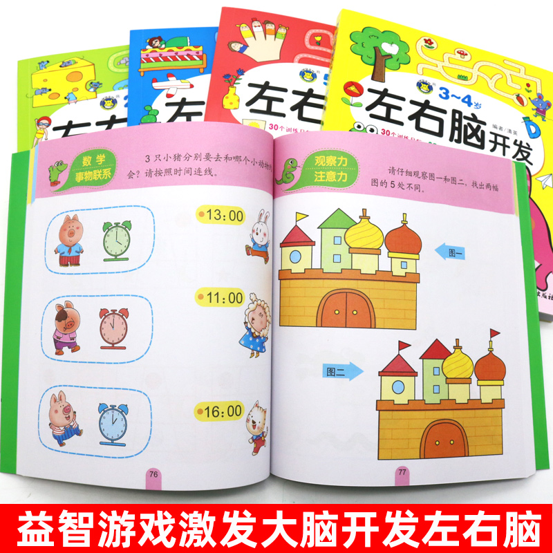 7岁思维游戏 7岁幼儿园益智数学启蒙逻辑思维训练书籍早教书河马 左右脑开发2 智力测试儿童大脑潜能智力开发2