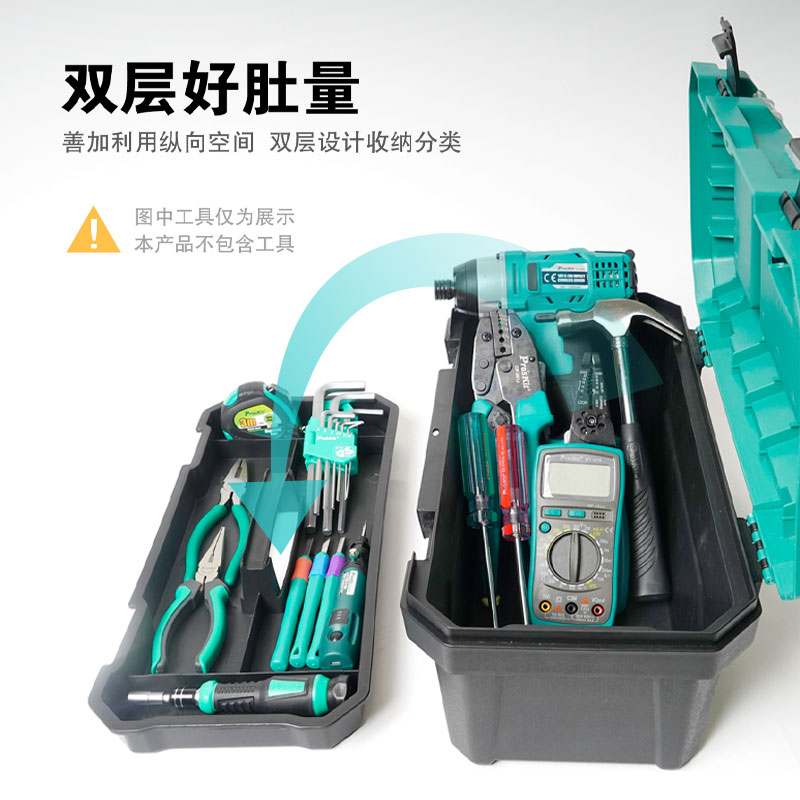 宝工五金工具箱家用多功能手提电工车载收纳盒双层工业级SB 1418