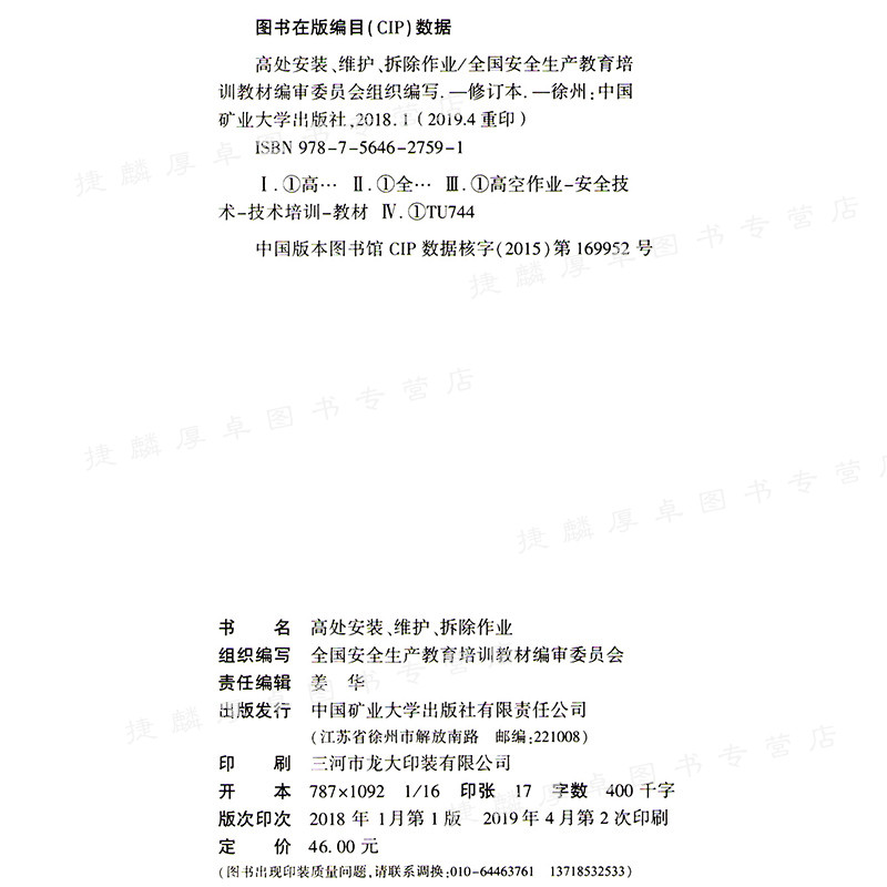社 中国矿业大学出版 9787564627591 维护拆除作业2018版 高处安装
