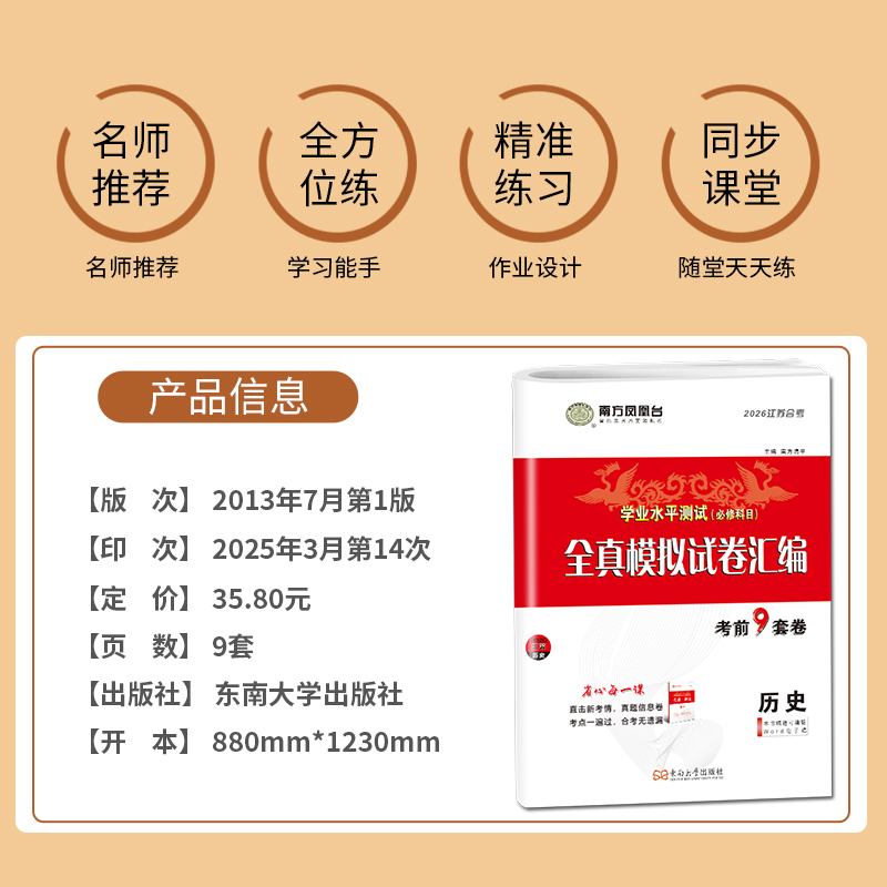 考前9套卷速成卷 江苏2026南方凤凰台 全真模拟试卷汇编 历史 高三高中生高考必刷题教辅练习卷小高考 江苏省学业水平测试必修科目