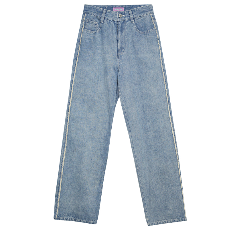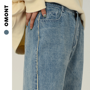 裤 omont蛋挞家 初春直筒显瘦宽松长裤 女2021新款 子 休闲高腰牛仔裤