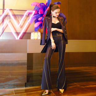 女春秋新款 休闲直筒慵懒松弛感裤 高腰垂感窄版 裤 子 西装 黑色阔腿裤