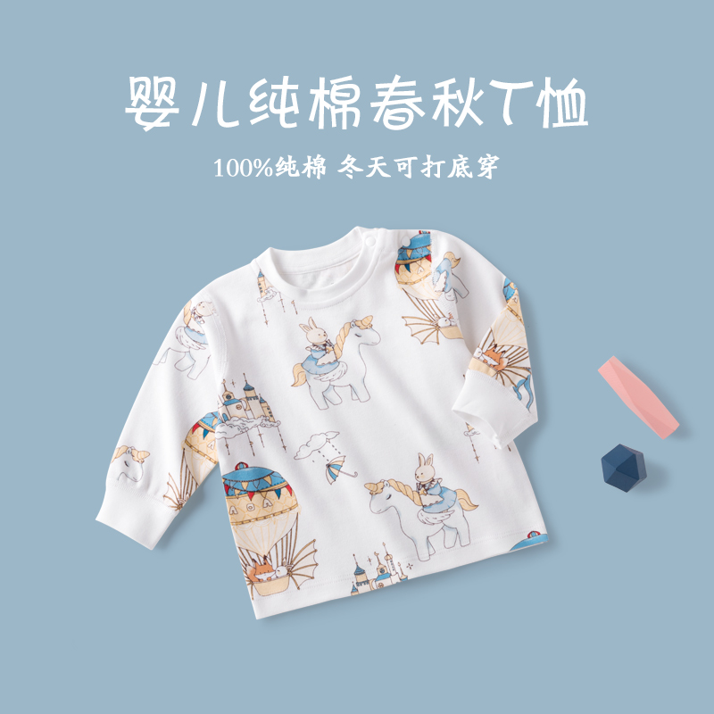 3岁宝宝纯棉打底睡衣空调房长袖 衣服1 上衣厚T恤 装 酷尾巴婴儿四季