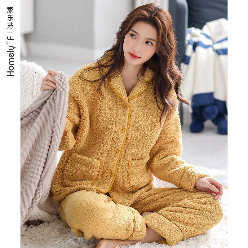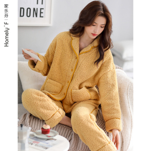 珊瑚绒加厚加绒保暖法兰绒家居服冬天可外穿套装 睡衣女秋冬季 冬款