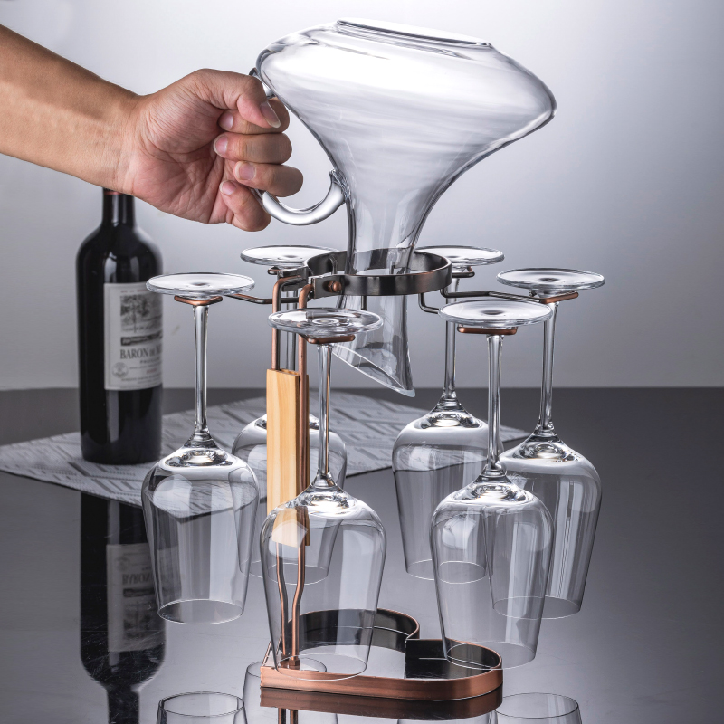 红酒酒具套装 高脚杯家用水晶玻璃杯醒酒器挂架葡萄酒杯 红酒杯套装