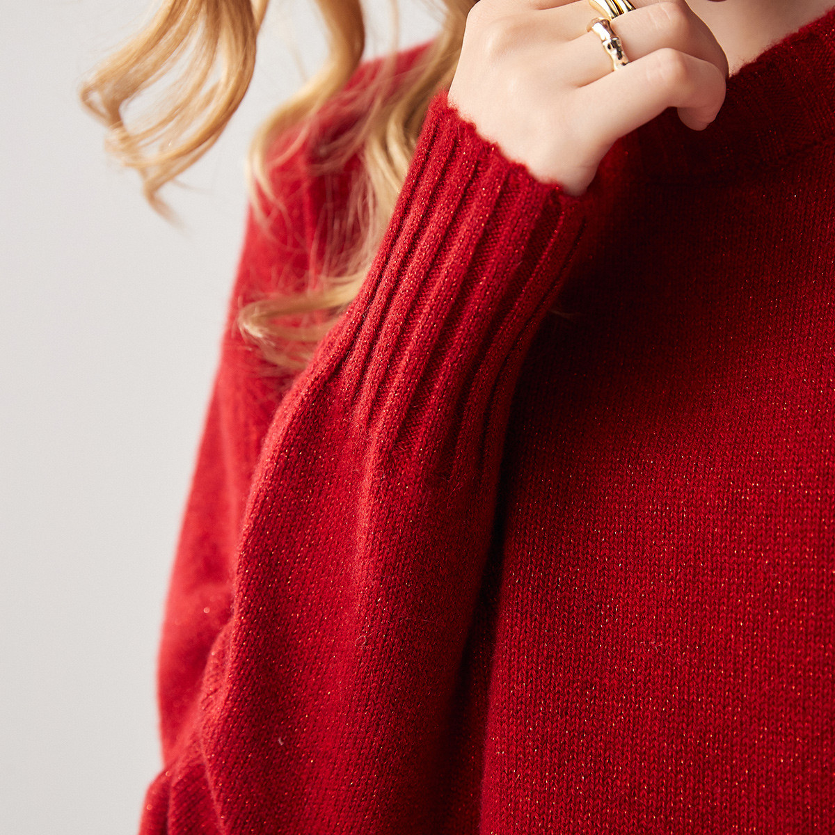 打底毛衫 2025新款 女冬亨利领含5.9%羊绒发热抗静电修身 森马针织衫