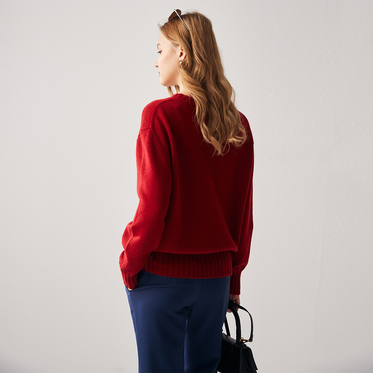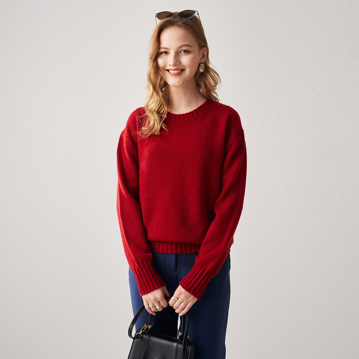 高级感上衣宽松打底针织衫 圆领100%纯山羊绒衫 女高端毛衣秋冬新款