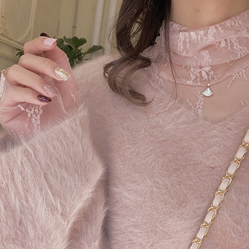 搭配毛衣网纱上衣 小衫 高领蕾丝打底衫 女内搭洋气春秋冬季