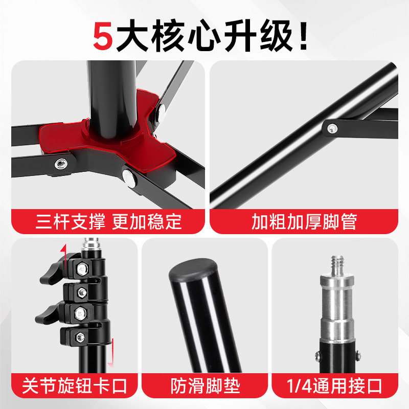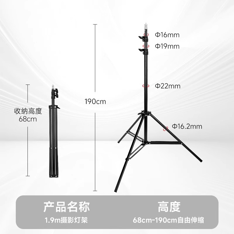摄影灯架1.9米机顶闪光灯不锈钢支架便携配件灯架子折叠三脚架户外影室灯补光灯拍照拍摄小型外拍灯附件
