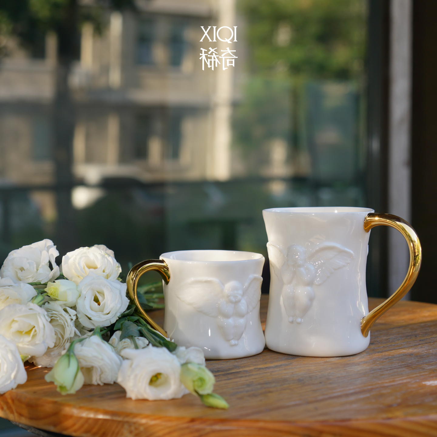 稀奇艺术天使浮雕情侣对杯搭配精美生日新婚礼物礼盒装