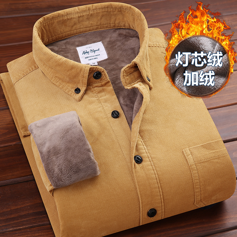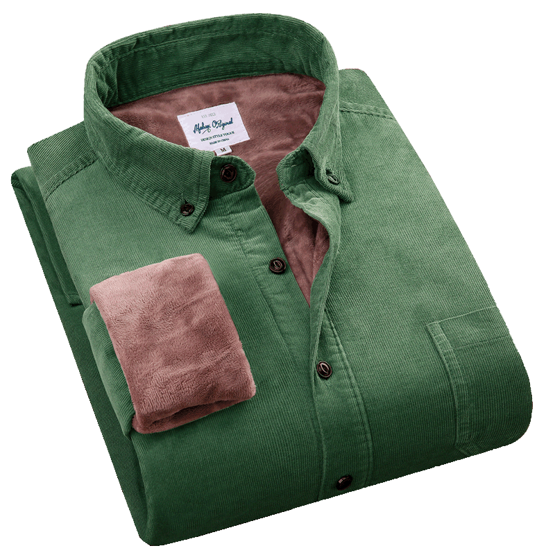 韩版 莎芭绮冬装 男长袖 保暖衬衫 纯色衬衣免烫绿 灯芯绒加绒加厚男士
