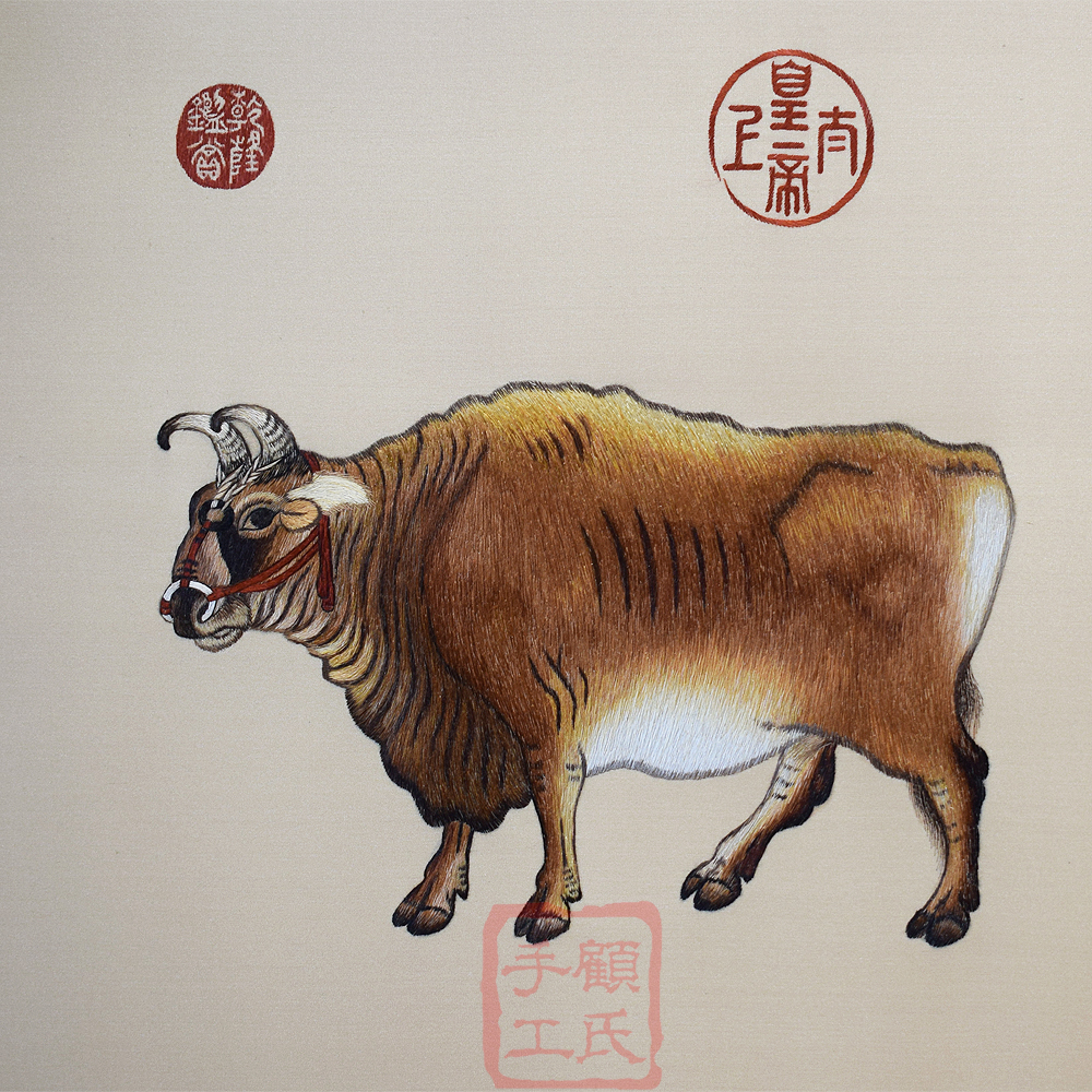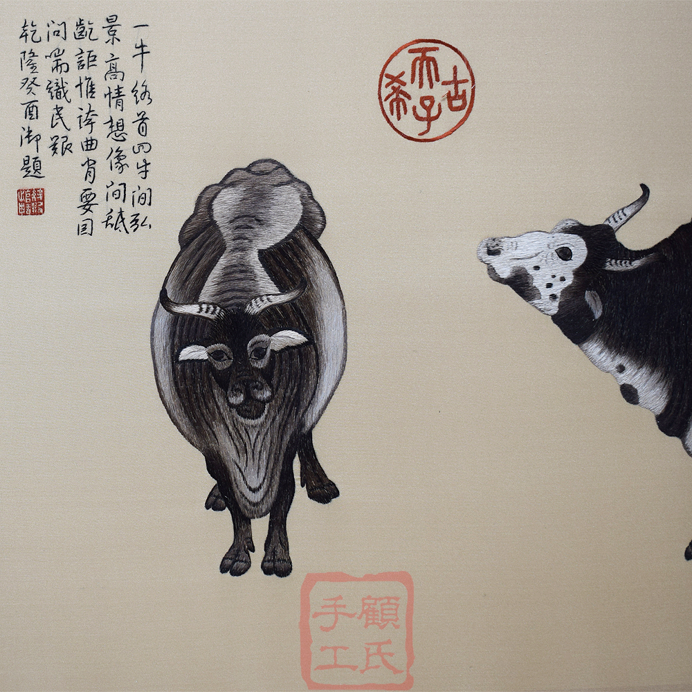 饰挂画 155顾氏手工精品苏绣五牛图古画客厅书房办公室背景墙装