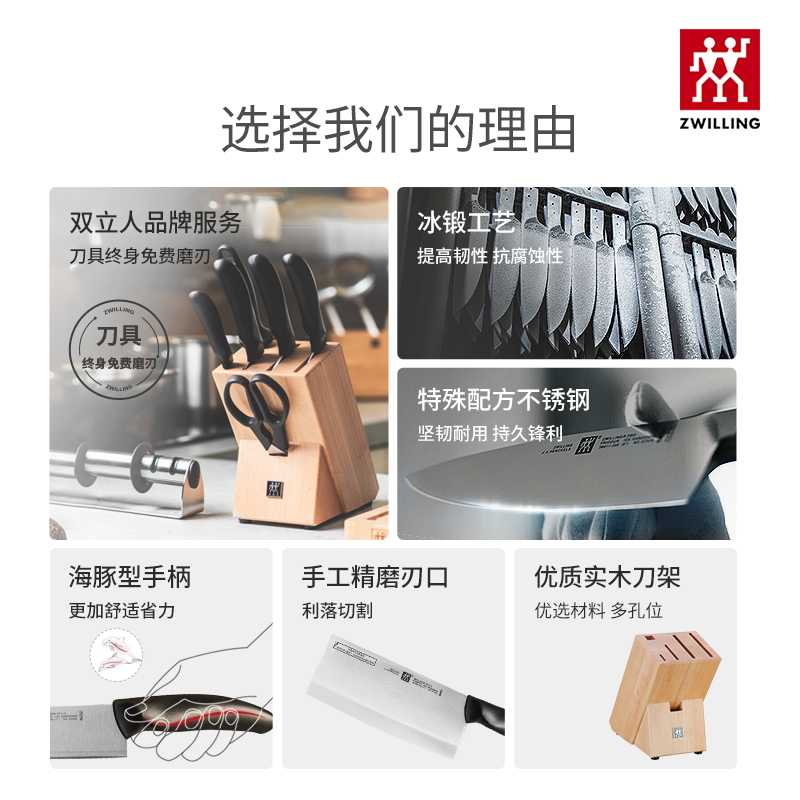 德国双立人刀具7件套厨房家用套刀菜刀砍骨刀水果刀磨刀棒官方