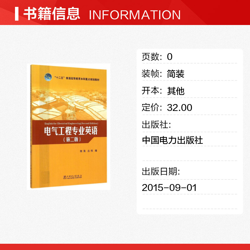 陈青 丛伟 新华书店正版 第2版 图书籍 大学教材大中专 十二五普通高等教育本科重点规划教材 著 电气工程专业英语 编