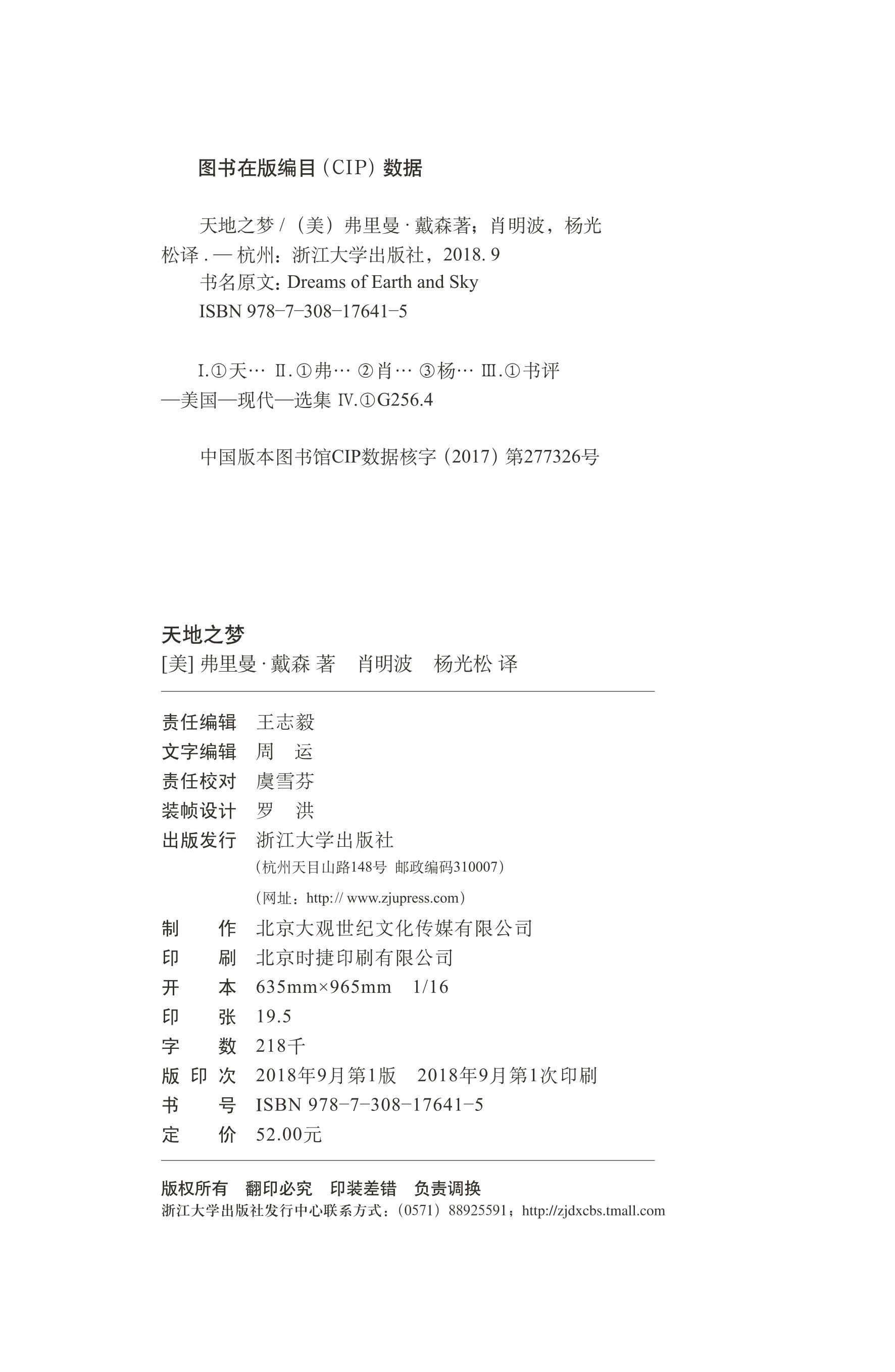 译者 弗里曼·戴森 肖明波 杨光松 社 天地之梦 浙江大学出版 美