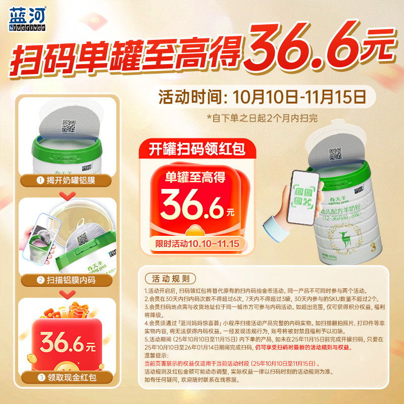 12月2段800g6罐新西兰进口 蓝河春天羊羊奶粉6 官方旗舰店