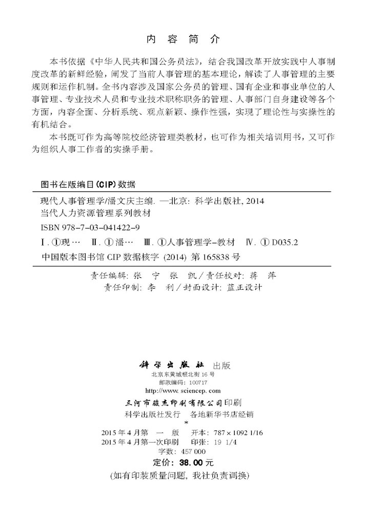 科学出版 正版 潘文庆著 现代人事管理学 社 现货