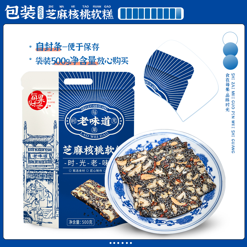 每果时光黑芝麻核桃软糕500g芝麻饼老式 糕点切糕孕妇小吃健康零食