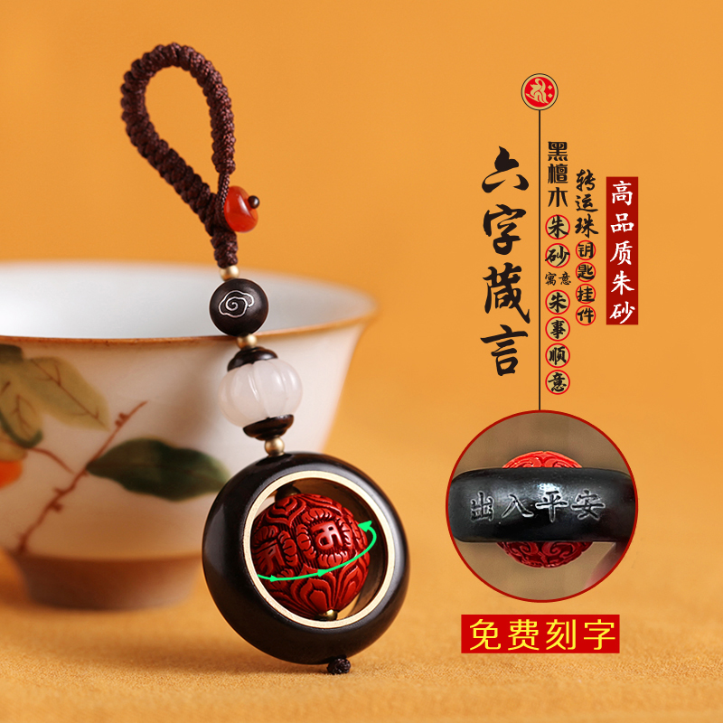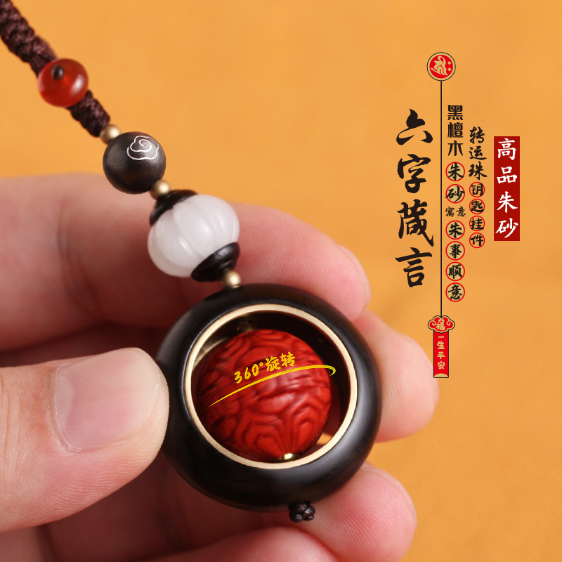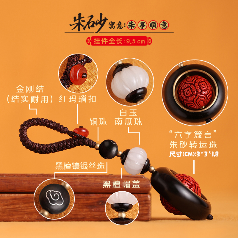 紫檀木汽车钥匙扣挂件朱砂转运珠钥匙链手绳男女士手机挂饰品吊坠
