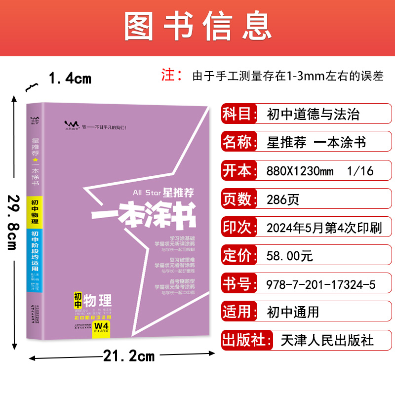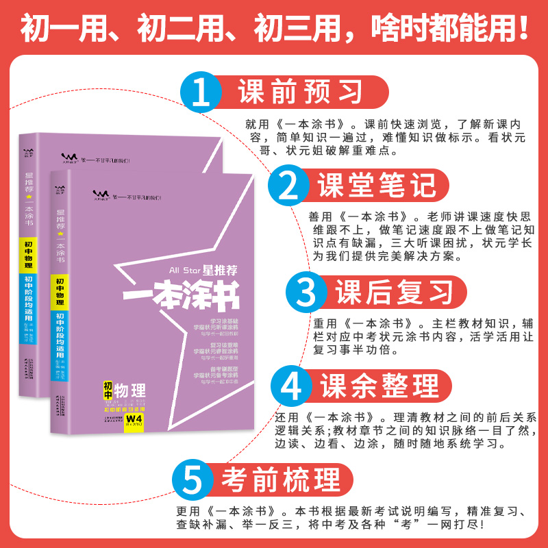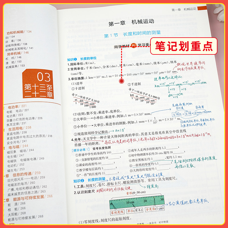 学霸课堂笔记初一二初三中考教辅辅导资料书 基础知识手册状元 七八九年级上下册知识点大全辅导教材书 一本涂书初中物理 2025新版