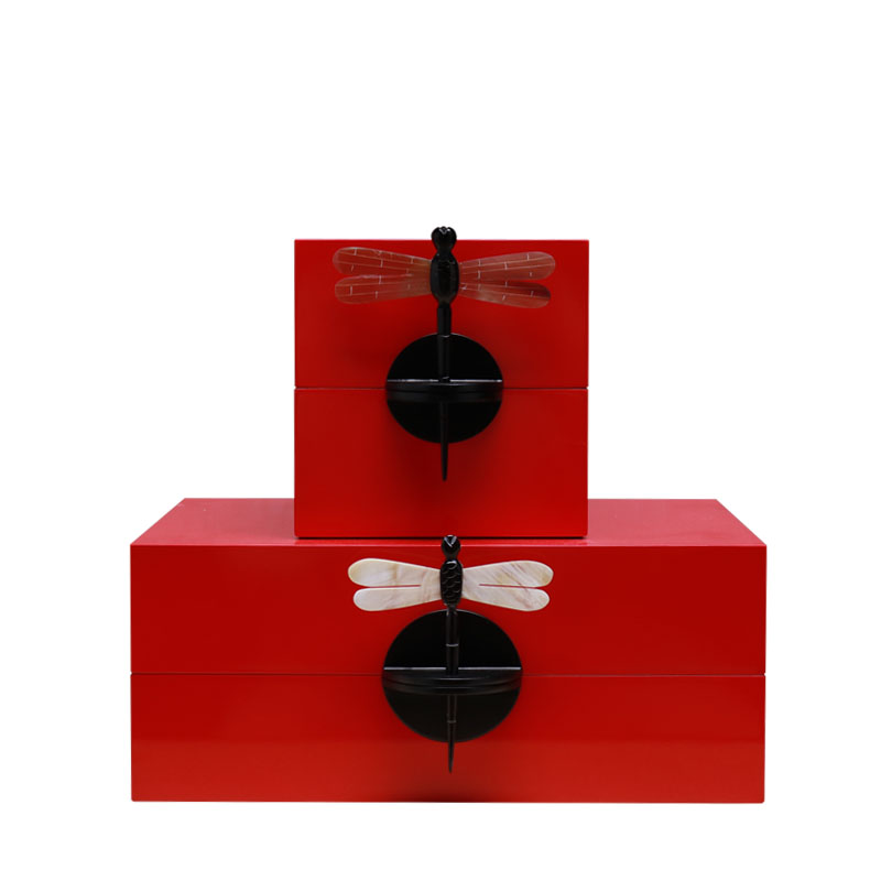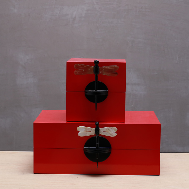 新中式 饰品 现代创意喜庆红色首饰盒摆件样板房家居储物饰品盒软装