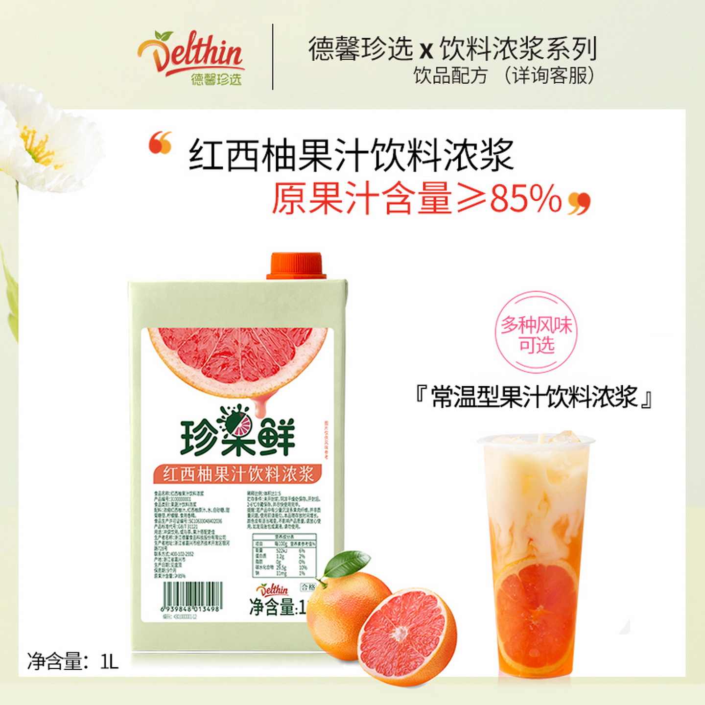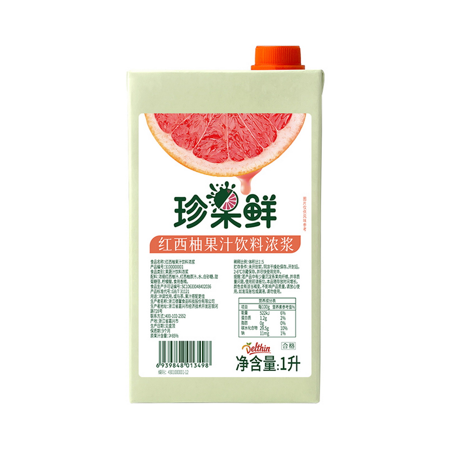 德馨红西柚汁 奶茶店专用浓缩汁原料 珍果鲜红西柚果汁饮料浓浆1L