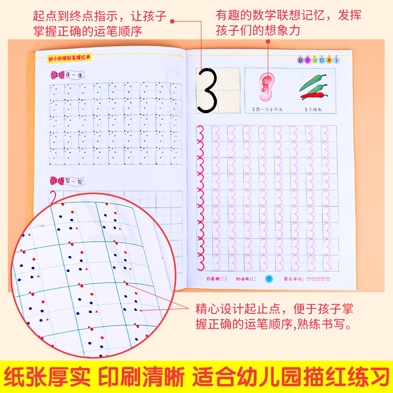 幼儿园1 10数字贴汉字笔顺描红本拼音全套儿童田字格练字本初学者
