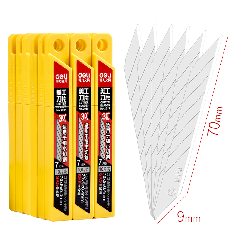 10盒100片 得力2015小号9mm加厚壁纸刀片sk5合金雕刻刀片30度美工刀刀片切纸介刀片工业用多用途批发