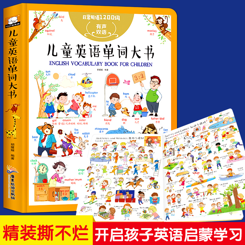 情景英语单词大书儿童英文1200词大全入门读物3 6岁少儿初级零基础自学教材学前拼读小学生分级阅读英文绘本 6岁幼儿启蒙发声绘本3