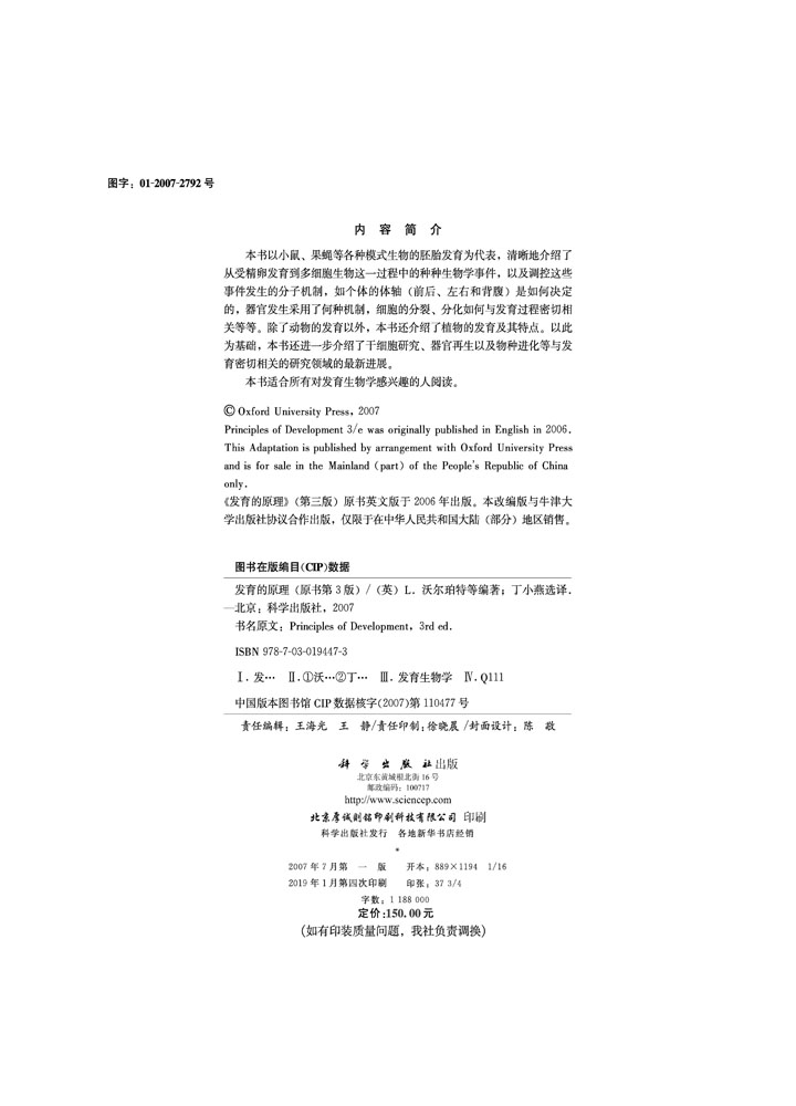 选译 社 原理 L.沃尔珀特 等编著; 英 发育 含光盘 科学出版 正版 丁小燕 现货