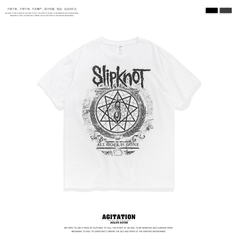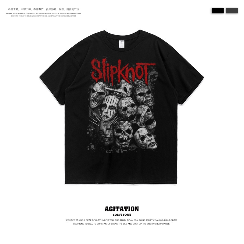 shirt夏季 T恤T 纯棉 短袖 SLIPKNOT活结乐队金属摇滚朋克风印花男士