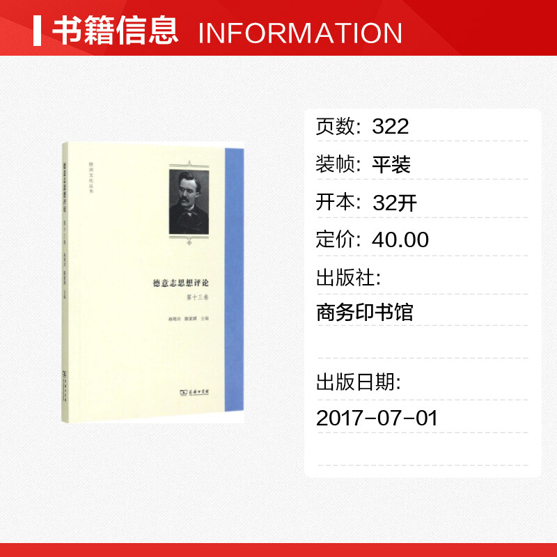 主编 商务印书馆 第13卷 德意志思想评论 书籍 陈家琪 正版 新华书店旗舰店文轩官网 孙周兴