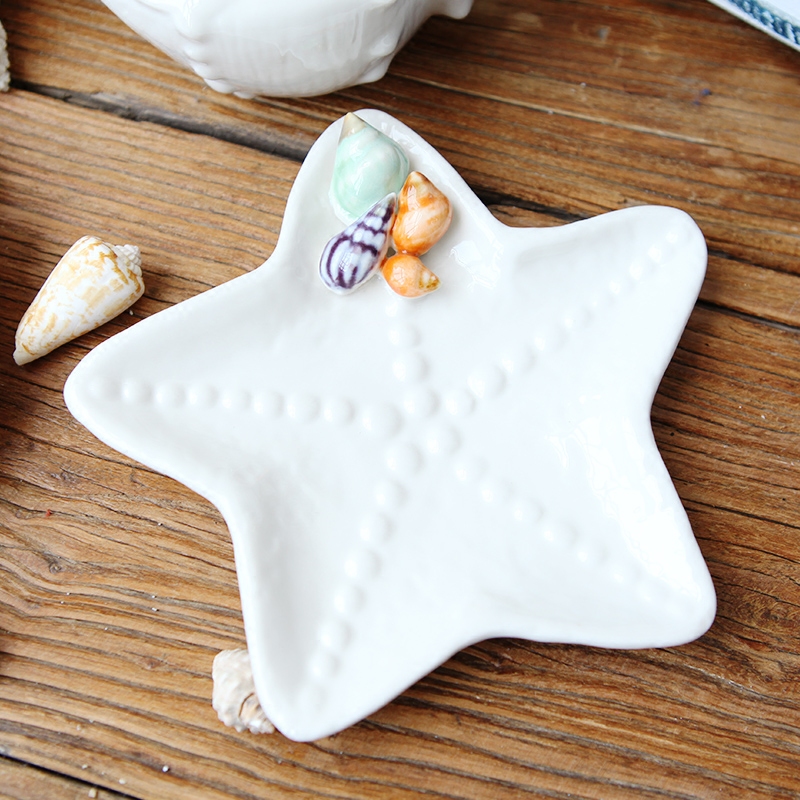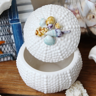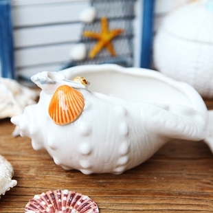 地中海陶瓷贝壳摆件海螺珊瑚客厅装 饰品海洋首饰盒白色果盘工艺品