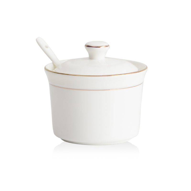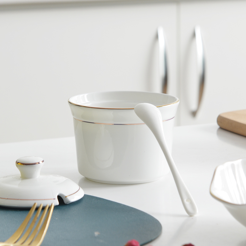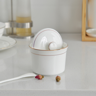 金边骨瓷调味罐防潮带盖盐味精调料盒单个厨房家用大号密封调料罐